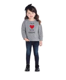 Blusão confeccionado em moletom, conta com delicada estampa de poá e coração de pelúcia em alto relevo.