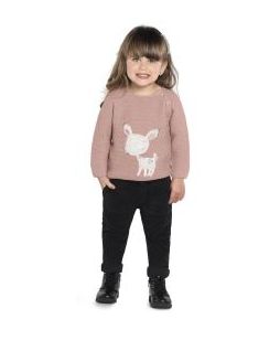 Esse modelo é um charme, confeccionado em tricô, possui estampa de bichinho peluciado e botões de coração na altura do ombro.