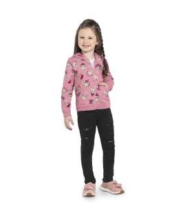 Confeccionada em molecotton, possui capuz e estampa de gatinho, punhos e barra em ribana de tom único, com abertura por zíper.