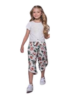 A calça pantacourt Verão têm tecido leve e estampa delicada, possui cós elástico e recorte diagonal nas pernas, o que é tendência e super estiloso.